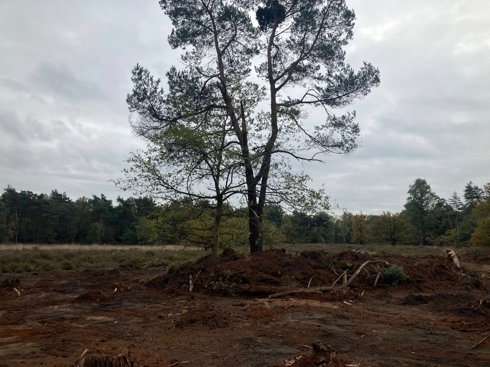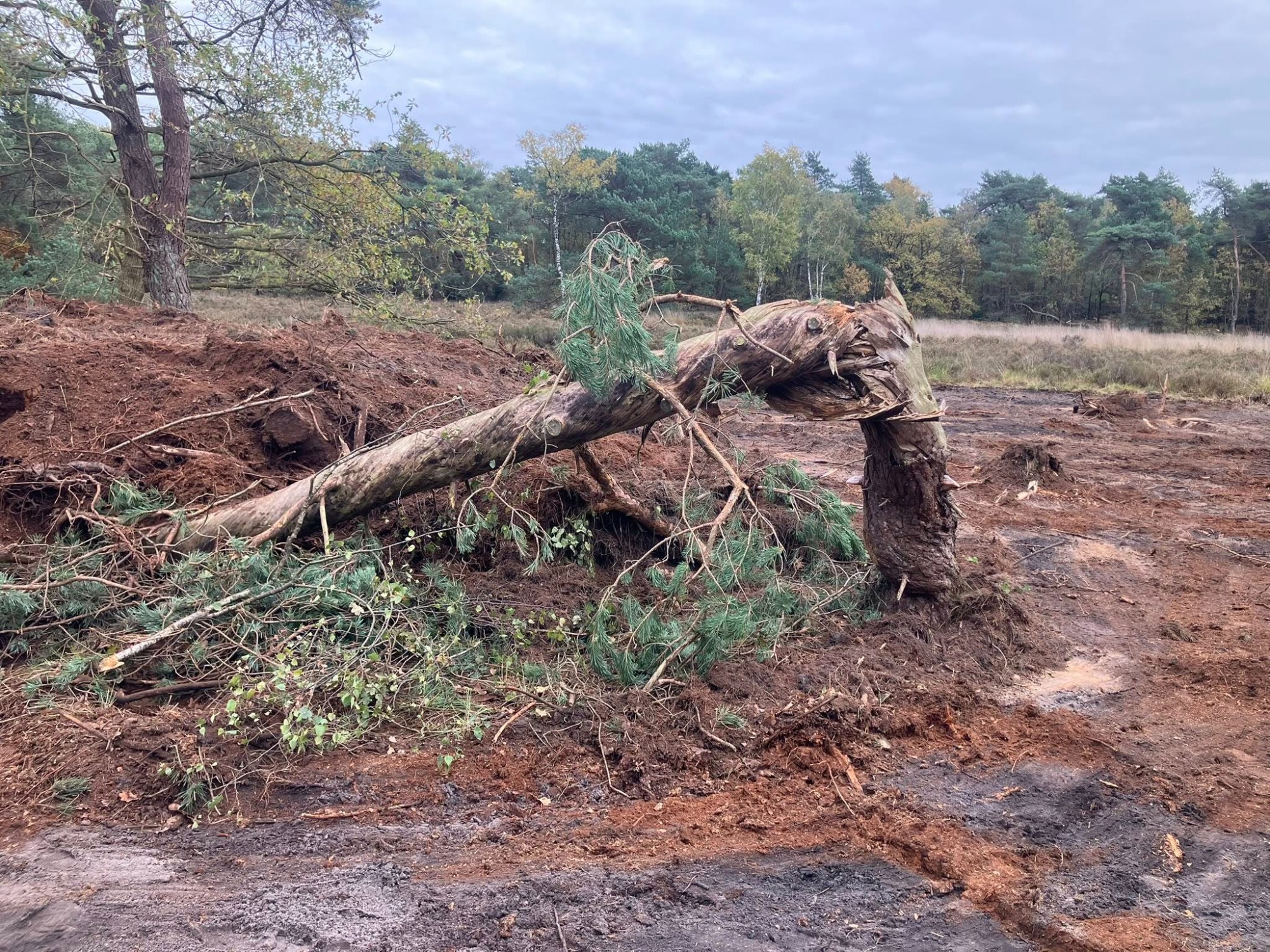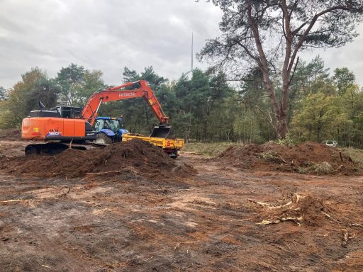 Ook hebben wij op diverse plekken deels geplagd voor heide uitbreiding en takken rillen gecreëerd als broed plaats voor amfibieën en vogelsoorten. Mooi werk